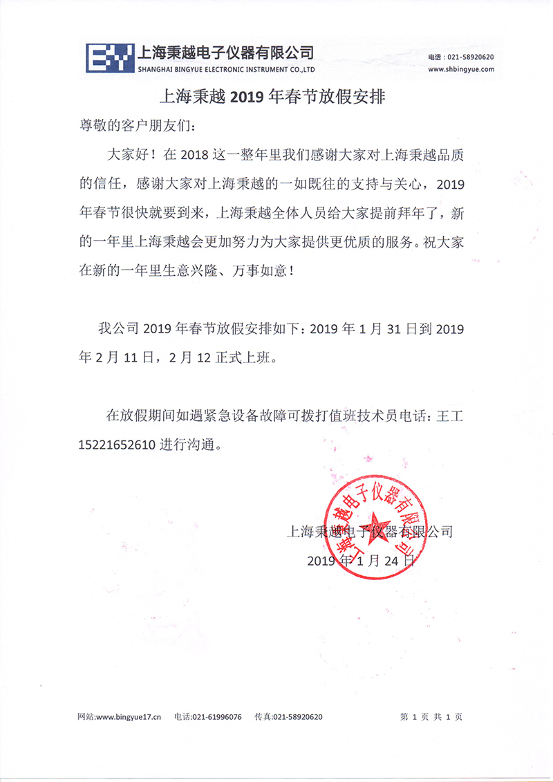 上海秉越2019年春節放(fàng)假(jiǎ)安排